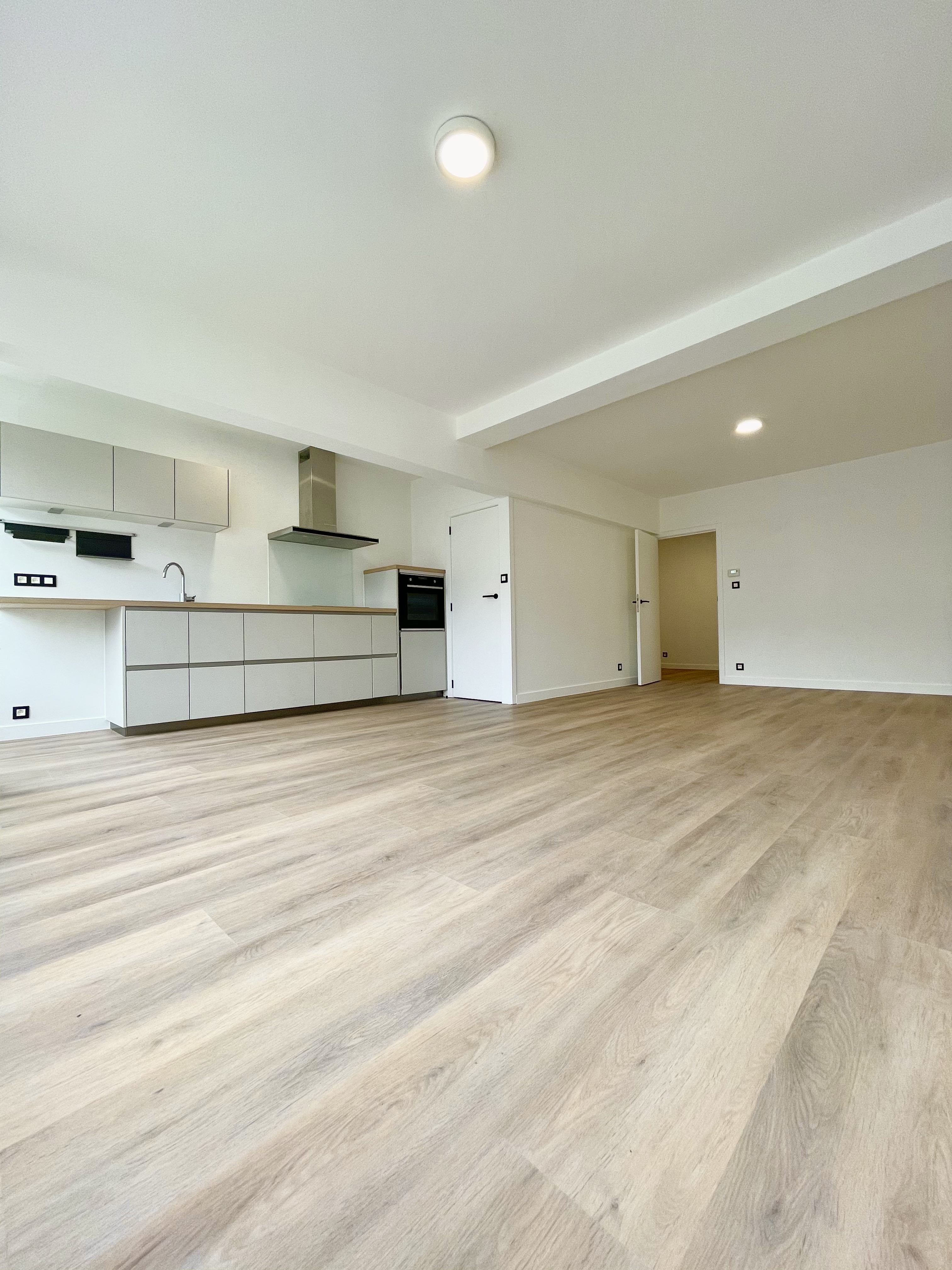 Een ruime inkomhal mondt uit op de gloednieuwe badmaker, de open keuken, de grote leefruimte en de slaapkamers.
